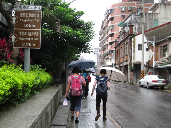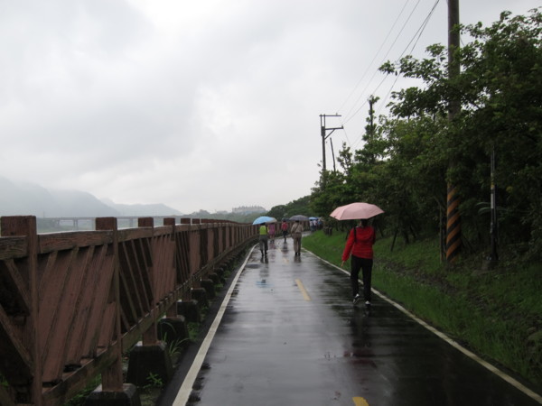 天雨路滑,叮嚀呼喚~提醒後頭隊友行走的安全路線