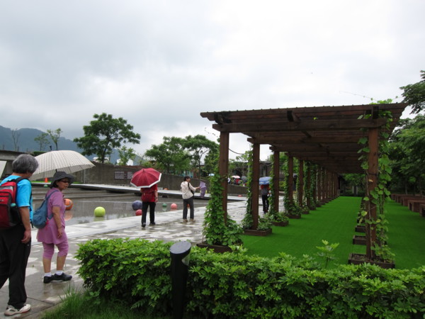 沙坑旁水廣場的涵洞適合休息吃芭樂