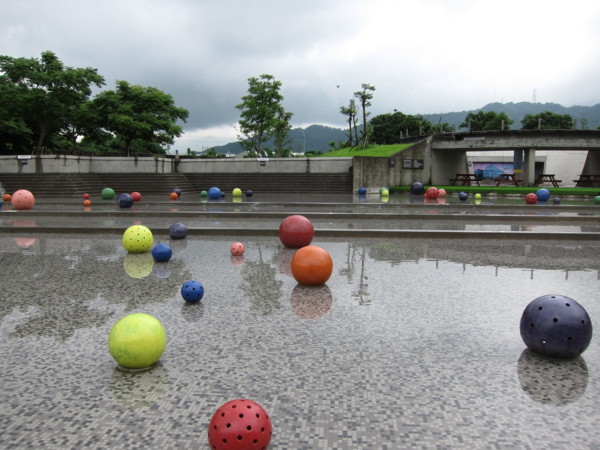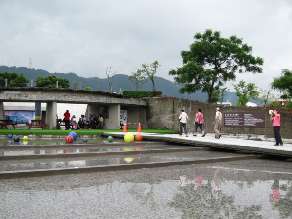 美國陶藝家維吉尼亞‧史考其的公共藝術作品「永恆浮動的球體」,由直徑78公分到30公分的50個球體組成,分五區置於景觀水池區。以球體造型隱喻陶器,象徵鶯歌五種主要陶瓷產業:藝術、建築、日用、衛生及工業陶瓷