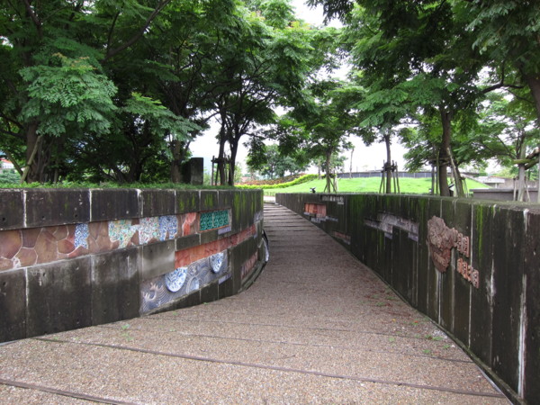由陶藝家以手塑陶板、拉坯、拼貼、彩繪等技法裝置成,隨著步道前行,台灣陶瓷發展的歷史與表現技法一一展現