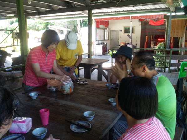 這才發現,鐵人背著大罐採綢招牌泡菜,一路上山,沒得卸下,