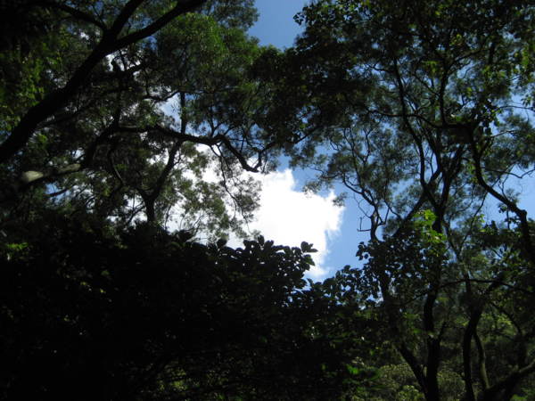 樹蔭蔽天,藍天白雲仍想方盡法的露出臉蛋。