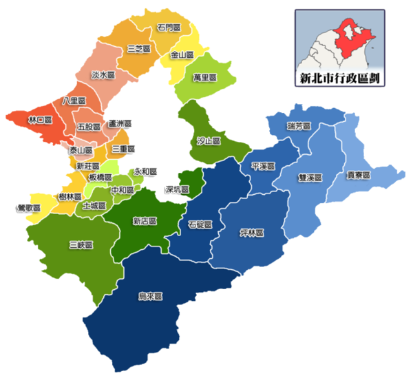 新北市行政區劃:http://zh.wikipedia.org/wiki/%E6%96%B0%E5%8C%97%E5%B8%82