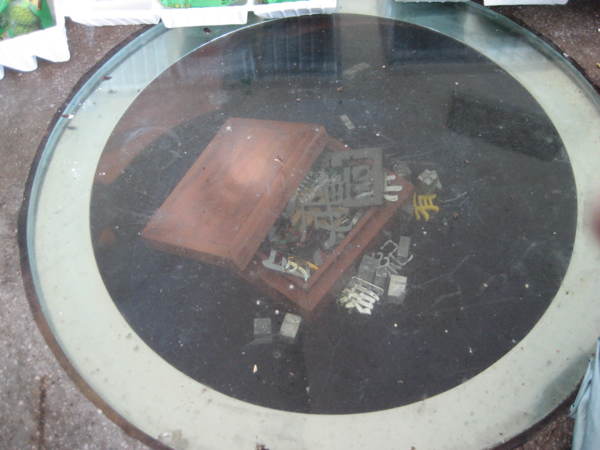 亭裡石桌上,隱約的詩社排字。