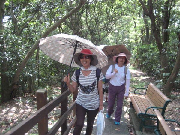兩美女,一前一後,一般悠閒。