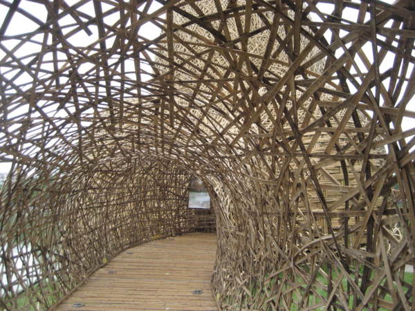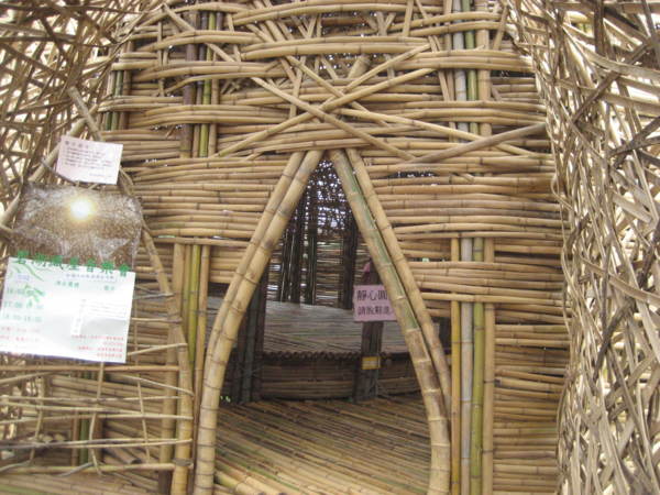 嘉義出身的地景藝術家王文志與200多人、4000根竹、一個月共織。