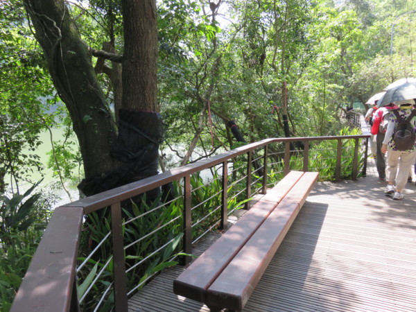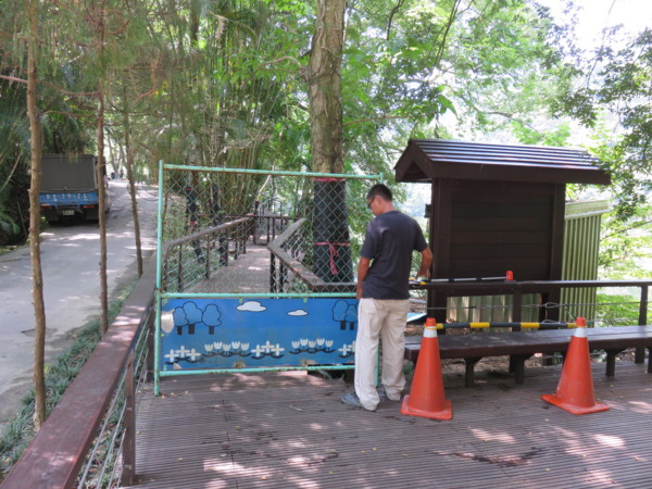 不過由於颱風剛過境,殘枝落葉有待清理,部分步道也未完工,所以便衣警衛硬是不讓大夥進去體驗新步道,領導一路爭取,說是前一天電話詢問遊客中心,同意星期一開放,苔伊更要警衛立即請示上級,用詞強硬,警衛無奈,緊急請示,終獲進入,苔伊功不可沒。