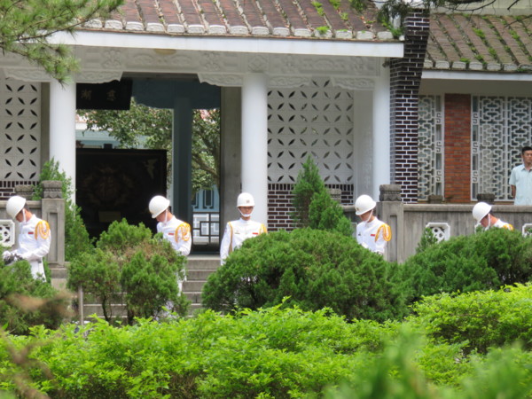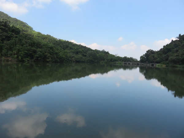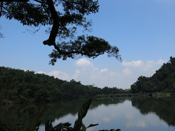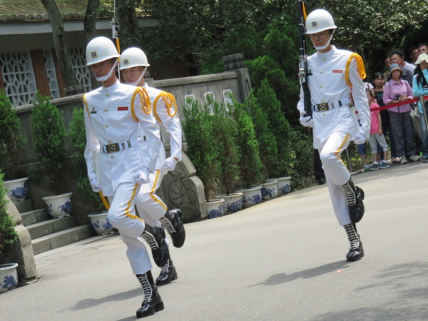 步道不長,約兩公里,由陵寢牌樓旁進入,環湖一周,出口即在陵寢附近,途中看見湖面映著藍天,天鵝戲水,綠蔭遮日,果然爭取進來一窺究竟是對的,也佩服遊客中心不斷讓慈湖蛻變,更親近大眾。遊湖出來,正好碰上陵寢衛兵交接,一陣劈哩啪啦,看得陸客目瞪口呆,猛按相機。