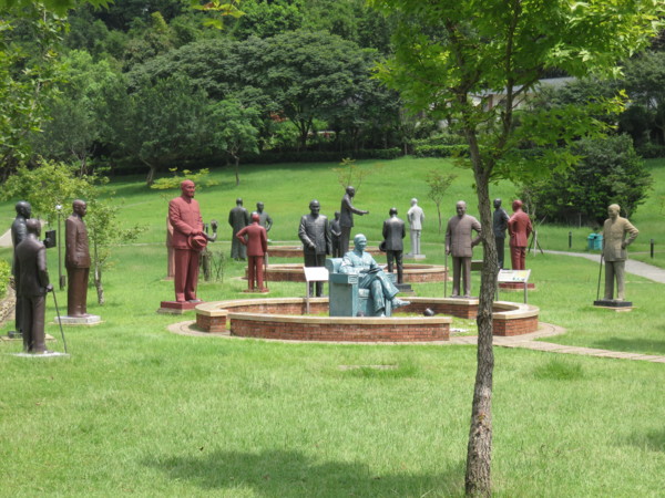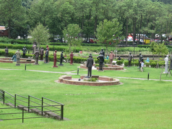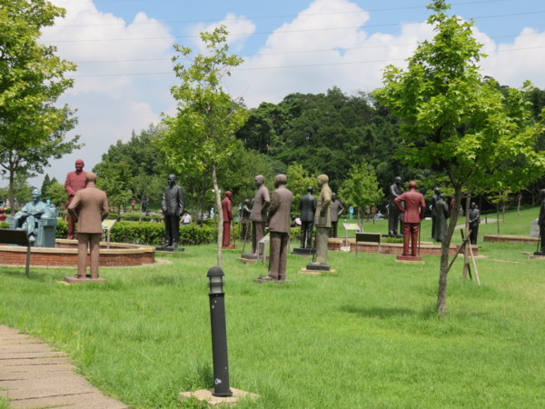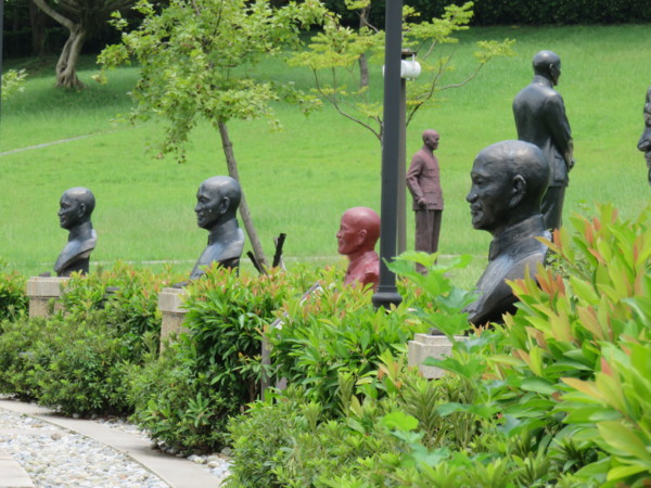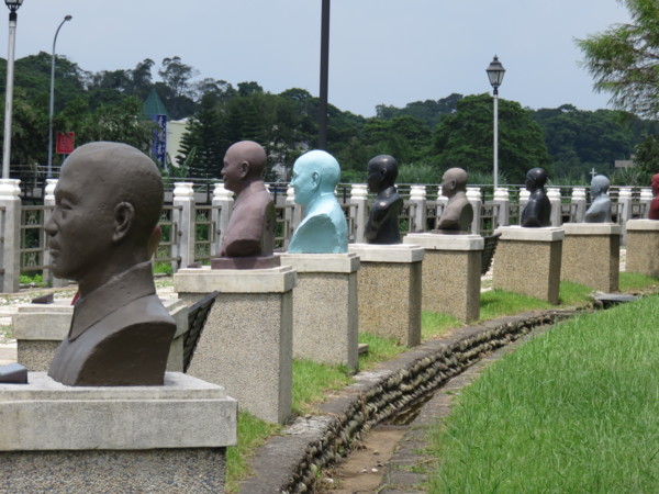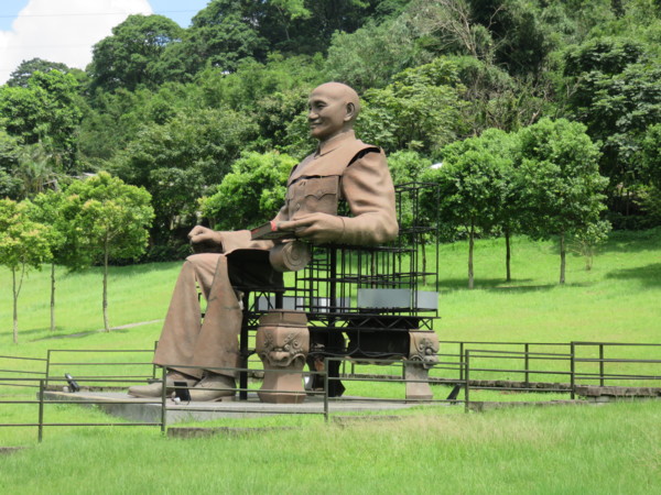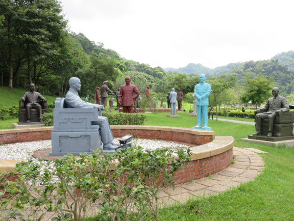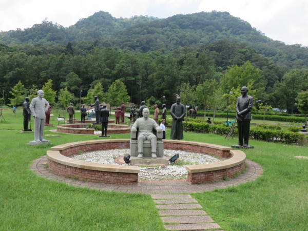雕塑公園,顧名思義,即知是雕像林立的公園,雕像有多少?實在很難算,有半身,有坐相,有立姿,有騎馬態,滿地遍野,至少超過百尊,只是這些雕像百分之九十九是紀念同一個人 —— 故總統蔣介石。蔣故總統剛離世時,全台掀起一股思念潮,紛紛以雕像紀念一代偉人,但不知是日久思變,還是政黨輪替,全台又興起一股毀像潮,幾經協調,終於成立雕塑公園,請全台所有不想要的雕像集中一較高下,看大小,也看雕工,看構思,也看創意,形成今日有趣的畫面,正好留給下一代來觀看歷史的演化。