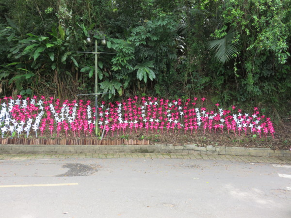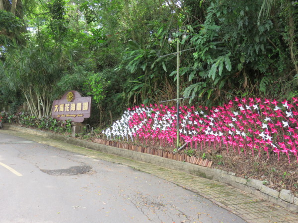 大溪花海農場門口, 退聯會及笑嘻嘻團都來過, 只是不知旁邊的紅白花是甚麼意思?