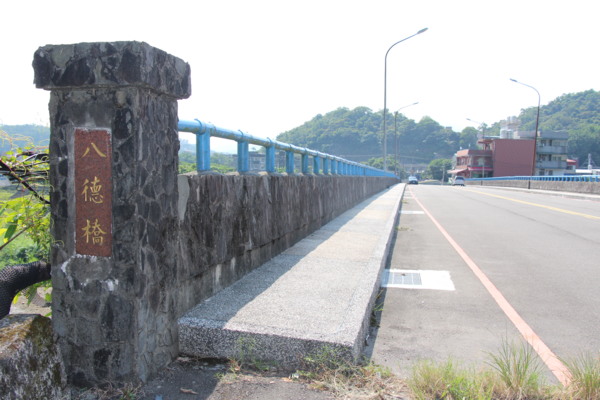 經基隆河上方的八德橋,此處為鶯歌溪注入基隆河處。過橋左轉八德路