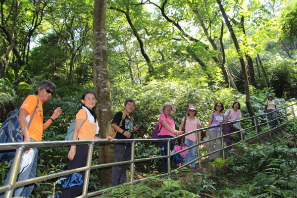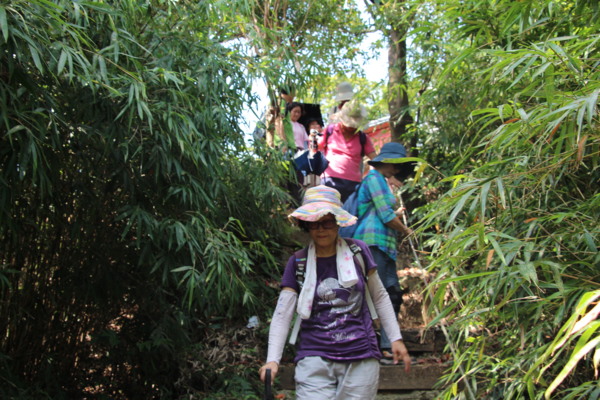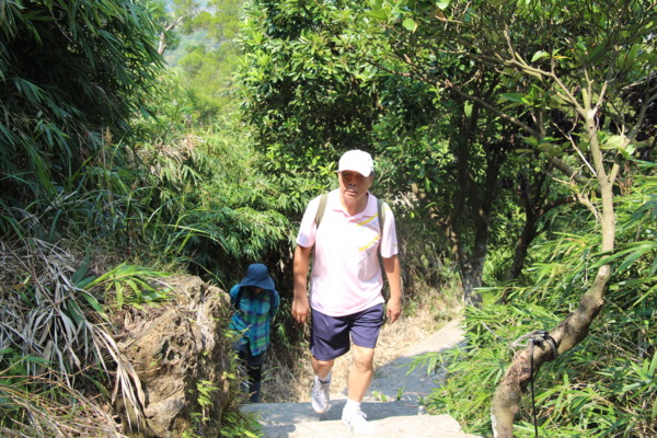 穿過公路下方,開始爬階梯,三角洲嶺北峰310公尺陡升,爬得眾人氣喘吁吁,數學專業leader說,其實角度只有20。