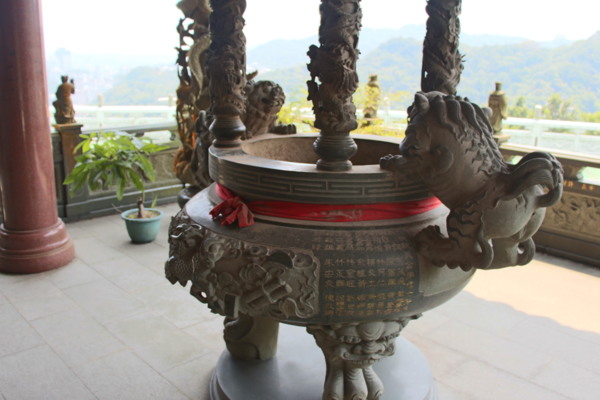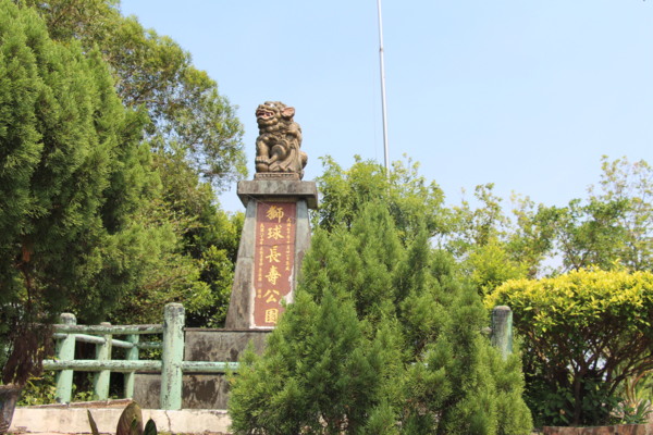 獅子會民國70年立的公獅,手拿雙銅錢、同時玩球。