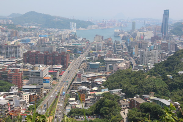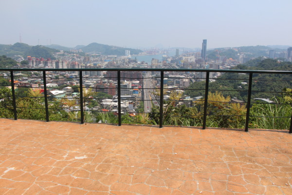 從獅球嶺砲台遙望:一號高速公路,左通基隆火車站,右通基隆廟口,天然良港四週環抱群山。飄渺的霧中,隱約透現基隆嶼。此嶼可搭船登岸瀏覽特殊地形。