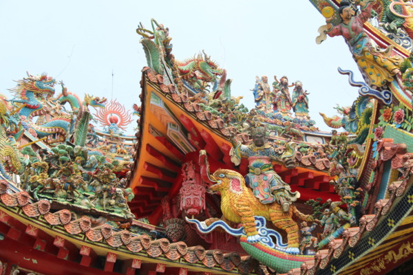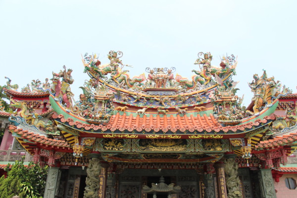 始建於1796年(嘉慶元年),大修于1921年(大正10年)。歇山重簷、蟠龍石柱、剪黏繁複精緻,還有鐘鼓樓,為大廟類型。可能與三大傳說有關: