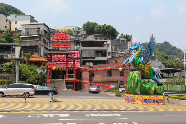 遠方宮燈處處的就是三姓公。前方為基隆中元祭的飛馬年,2014年主普為林姓。基隆,民間傳說為關雞的籠子,學者認為是北部原住民凱達格蘭族(Ketagalan)的音轉。基隆中元祭和宜蘭頭城搶孤、是七月鬼門開的重要祭典