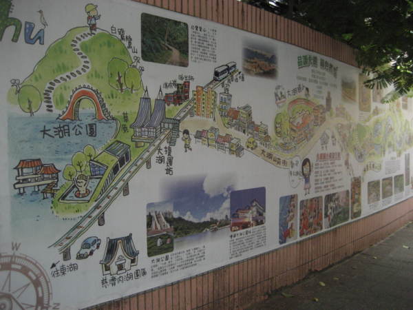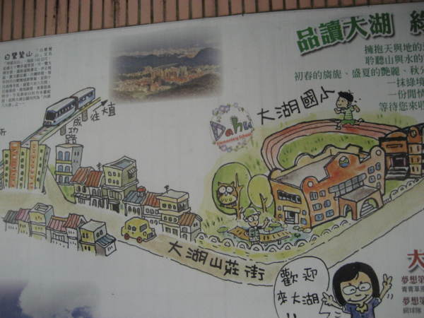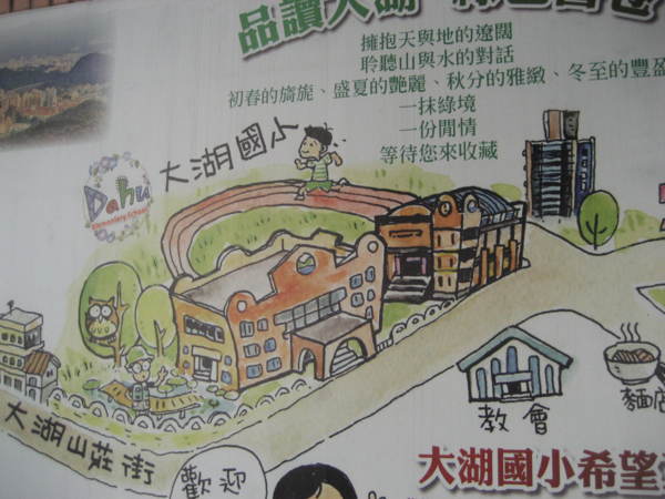 大湖國小,廣大的校地,圍牆外,精心繪製的地圖和解說,專業又可愛。