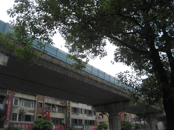 出得大湖山莊街,高架的文湖捷運線就在眼前。