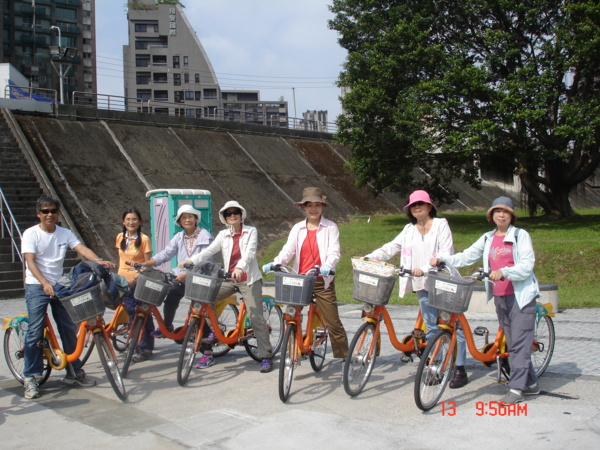 除了丹楓賢伉儷外,都是第一次騎U-Bike,所以一陣慌亂之後,大家總算都蓄勢待發了。