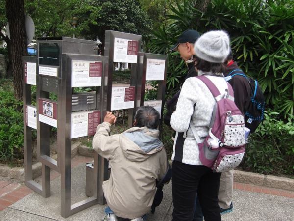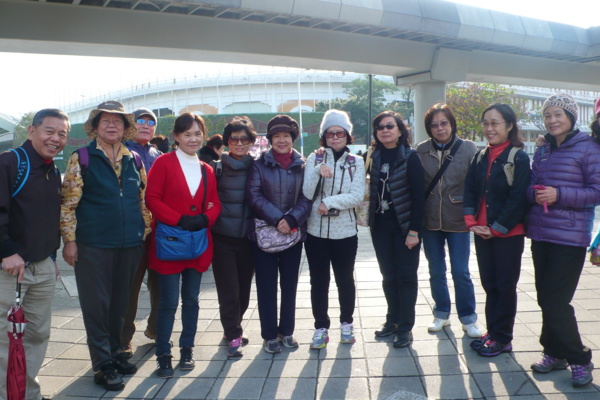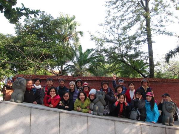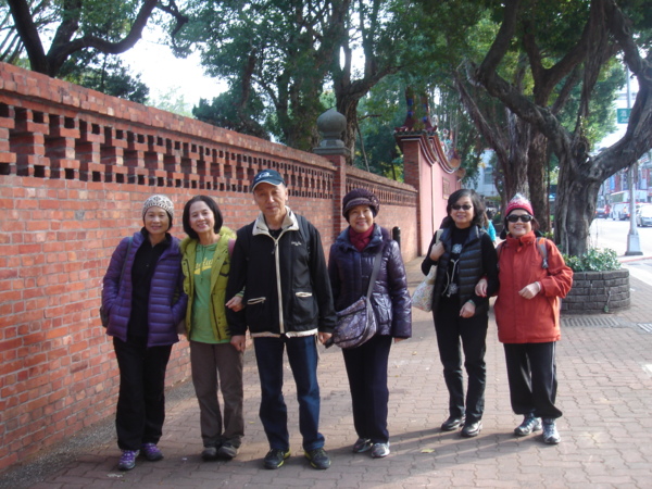 這回大家不受公務的牽絆,可以悠閒地、愉悅地來趟兼具燃燒脂肪與懷古幽情的文化之旅。除了102年9月5日走訪過的保安宮‧孔廟之外,還規劃了樹人書院、迪化老街、鄰聖苑、延平河濱公園、大稻埕公園、大稻埕碼頭、迪化運動公園。其中運動公園內的跨堤景觀平台於今年〈103年〉十二月十八日啟用,是北市繼客家文化主題園區跨堤景觀平台的第二座,將成為北市新遊憩景點。滿心期盼能一睹其風貌,不料卻因修繕未開放,無法如願。