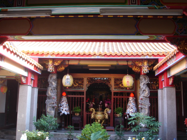 保安宮的門廳。保安宮肇建於1742年,1805年改建為廟。主祀保生大帝大道公,他是北宋時的醫師,因採藥失足而摔死。因屢有靈驗事蹟,遂成為福建同安人的守護神。