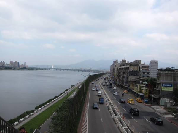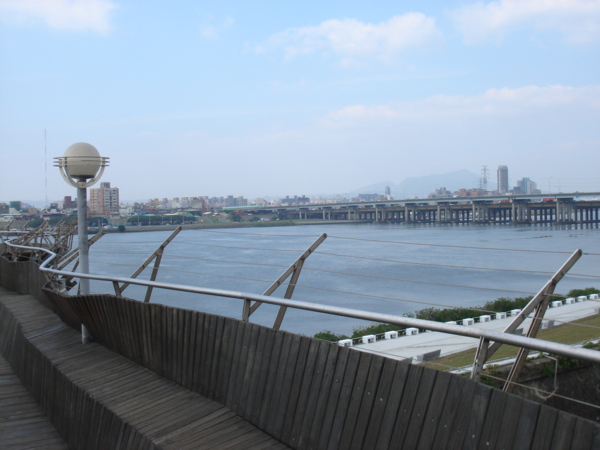 景觀平台延伸橫跨環河北路至堤外,在此可盡覽淡水河風光,亦可看到大稻埕碼頭的煙火秀。