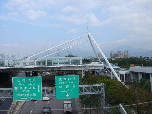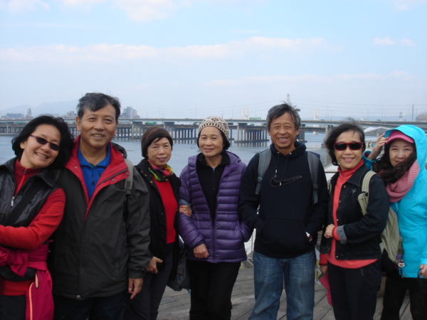 走人行陸橋前往延平河濱公園。大夥雖然沒能上景觀平台,仍然開心留影。