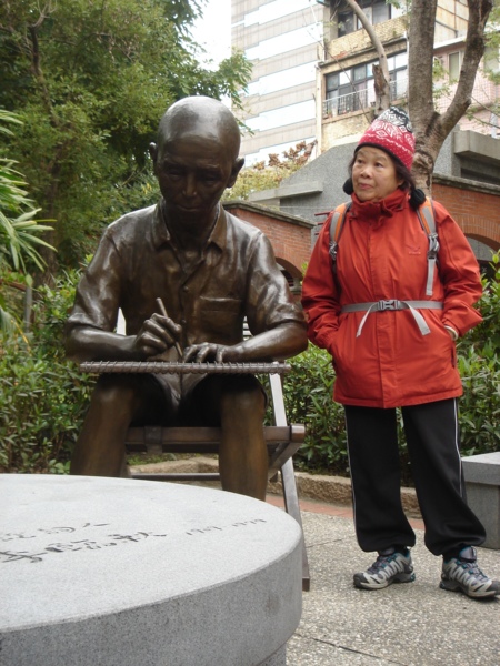 此塑像的特色是與人等高,且有石桌椅,給人濃濃的親切感。