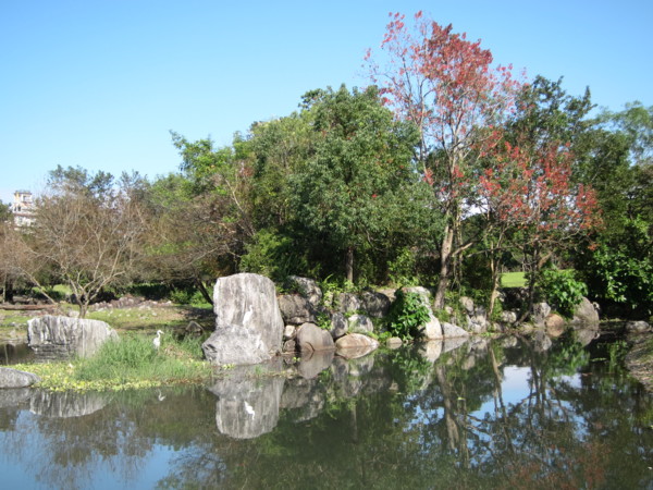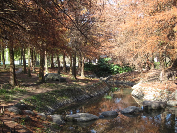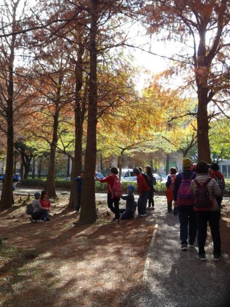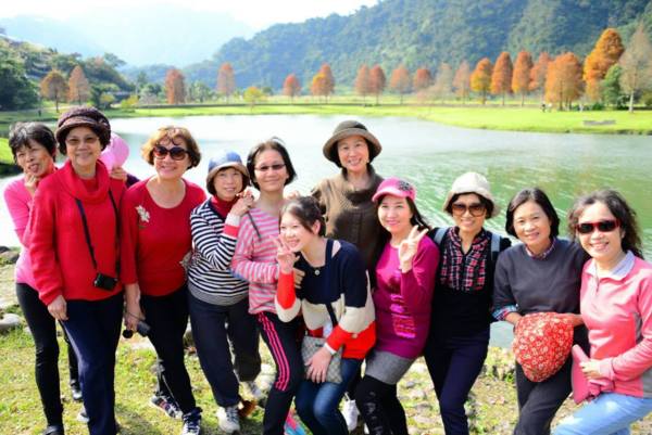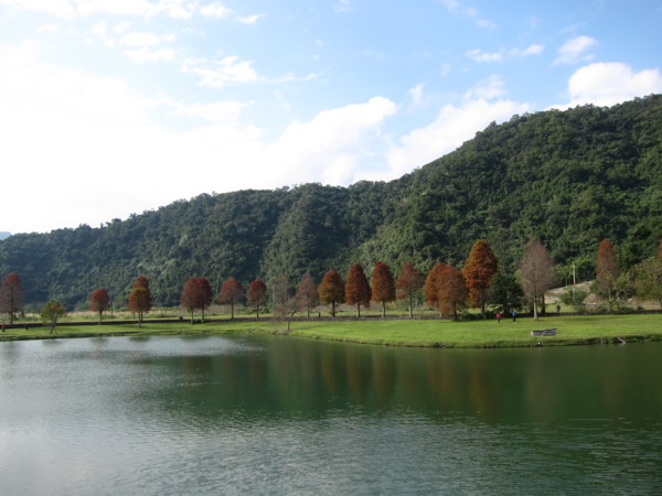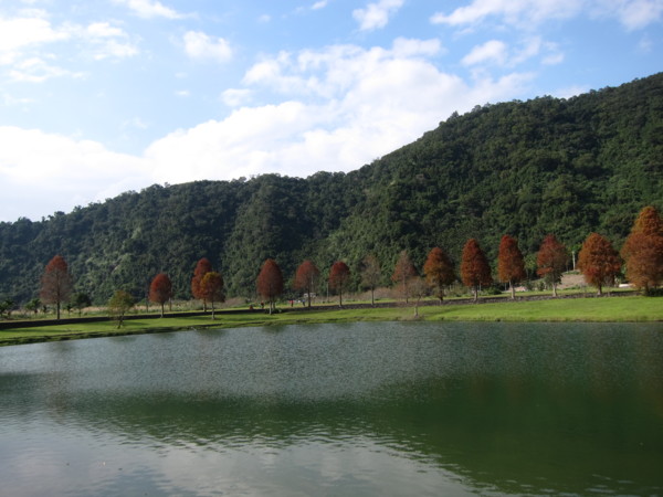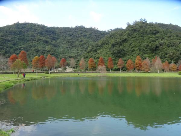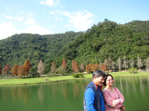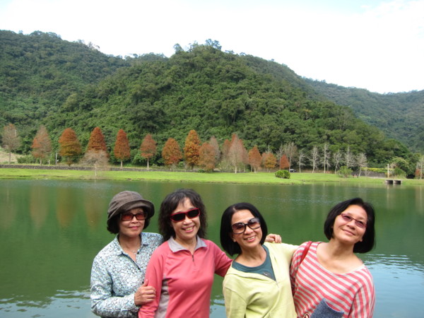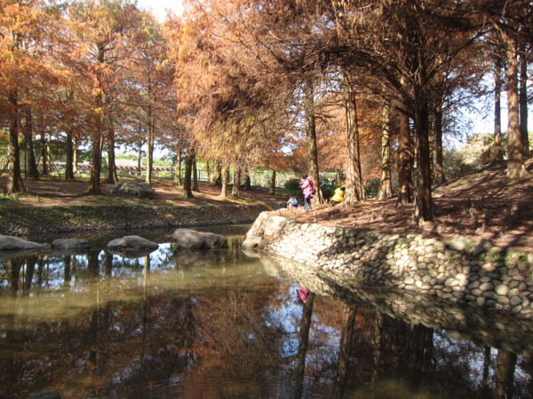 我們沿著湖邊由右邊進入 轉向左 沿路最大宗的數是落羽松 ㄧ群人三三