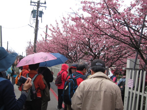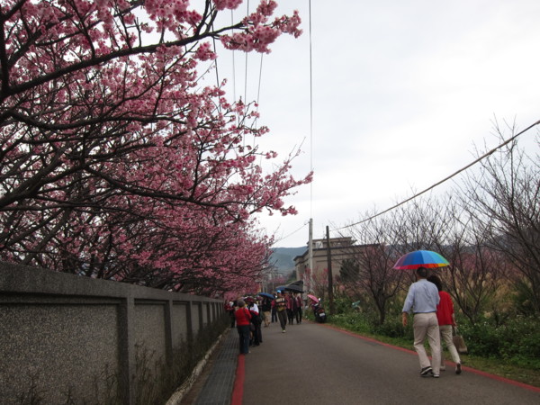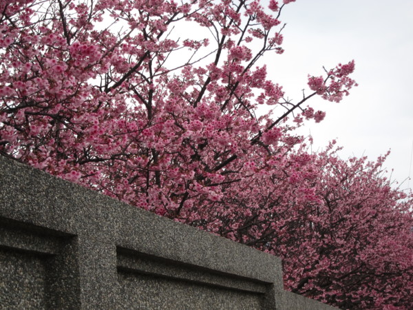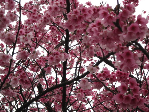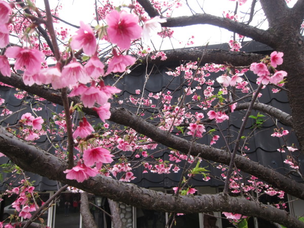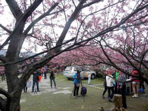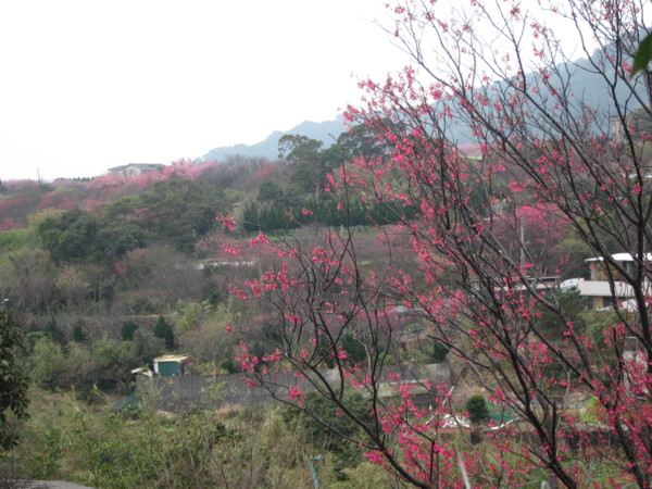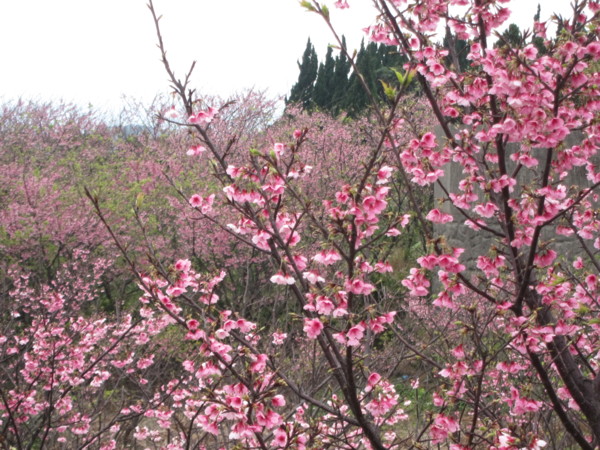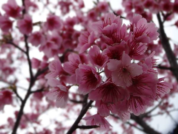 註:寒櫻,由寒緋櫻與山櫻或大島櫻雜交育成的品種,約於江戶時代後期開始栽培於日本關東以南地區,有早開的習性,在日本南部大約1月開花,所以稱為「寒櫻」。此品種開花期早、開花性良好,植株略能耐熱,因此引進栽培,在台北士林、北投的山區適應良好。