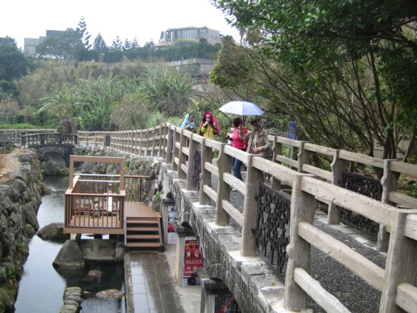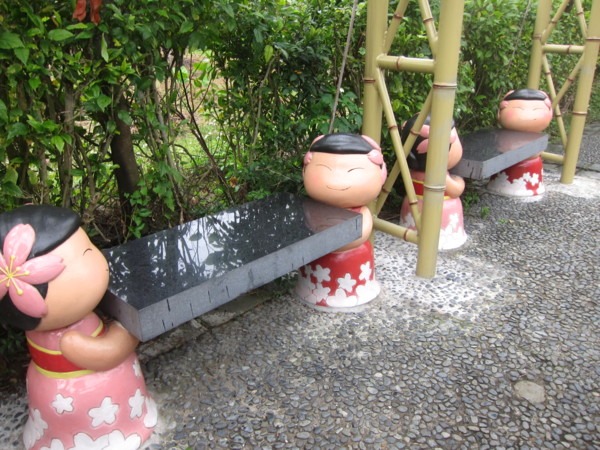 藤架下 休息座位 兩端塑有櫻花妹 表情可人