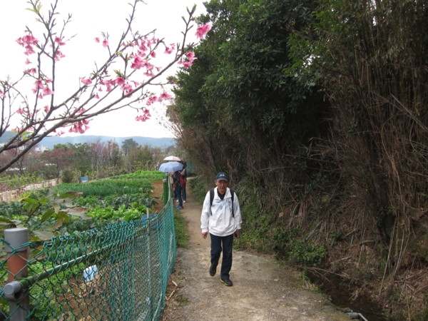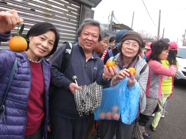 沿著圳水逆行 蔬菜 桔子 香蕉爬坡栽種 金黃翠綠 相參差