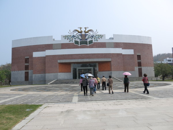 圖書館上的雙鸞鳳及纏枝花草, 是閩南及台灣建築的一大特色, 現移植到南藝大