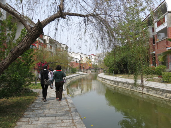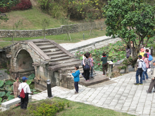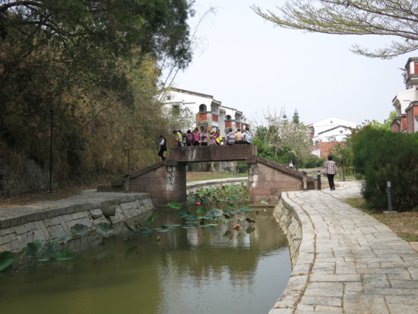 職務宿舍區與學校教室間為蓄水池與排洪道, 有三座古橋與三座便橋相通
