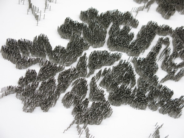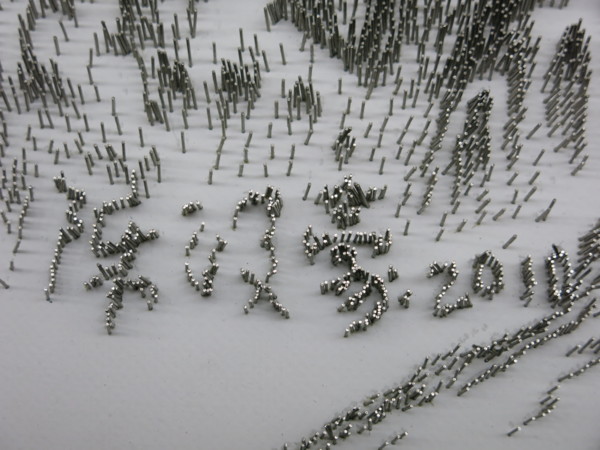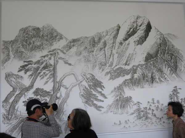 音樂廳進門後牆上的一幅針畫, 從不同角度觀看, 都有不同的視覺效果與感受