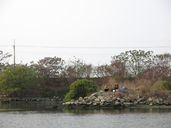 沿途多處以塊石堆砌成平台,是一種生態工法,不時有悠閒的釣者垂釣,因而戲稱為釣魚台