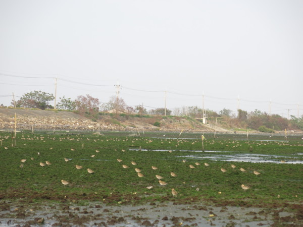 沙洲淺灘上濱鷸成群