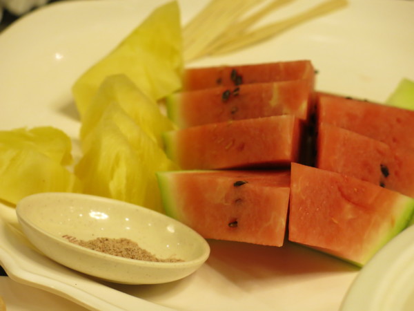 拜永隆友情之賜, 主人加菜 -- 好吃Q彈的豬腳, 飯後甜點, 水果, 價格不變, 樂壞大家