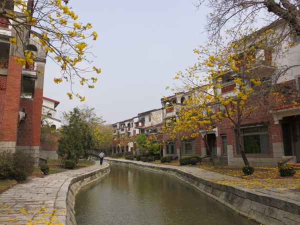 河流兩岸是教授宿舍,建校初期同時兼教授研究室與教室