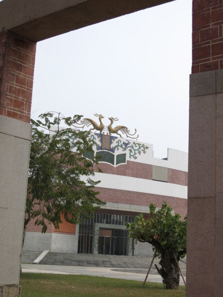 進入校門就看見圖書館上方一對造型優美的鸞鳳