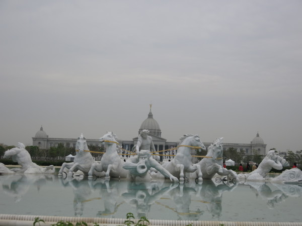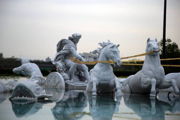 迎賓阿波羅噴泉, 原件在凡爾賽宮, 奇美取得授權, 並投入新台幣一億, 才能展現原貌, 迎賓噴泉自上午9點後, 每15分鐘噴水一次. 林副董說最近夜間增加燈光投射, 更有看頭