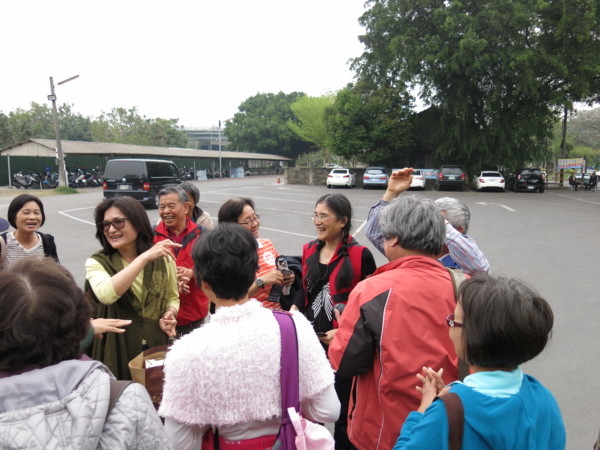 十鼓園區結束出來, 兆榮的妹妹與妹婿已等待多時, 兆榮妹妹曾與大家同遊西班牙, 此次從高雄來會, 備感親切, 她還帶餅乾來請客, 接著還要與大家到下一個景點北門