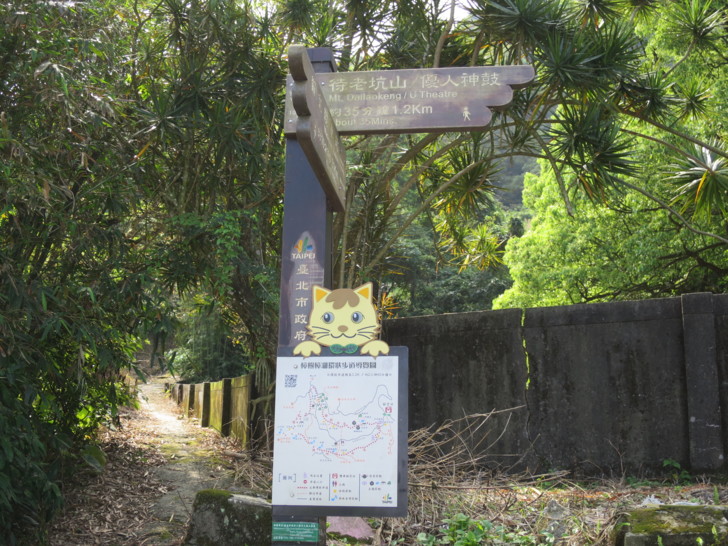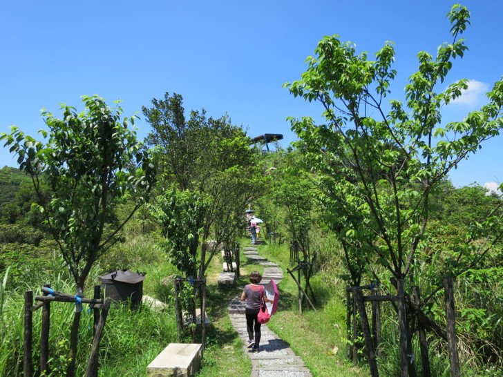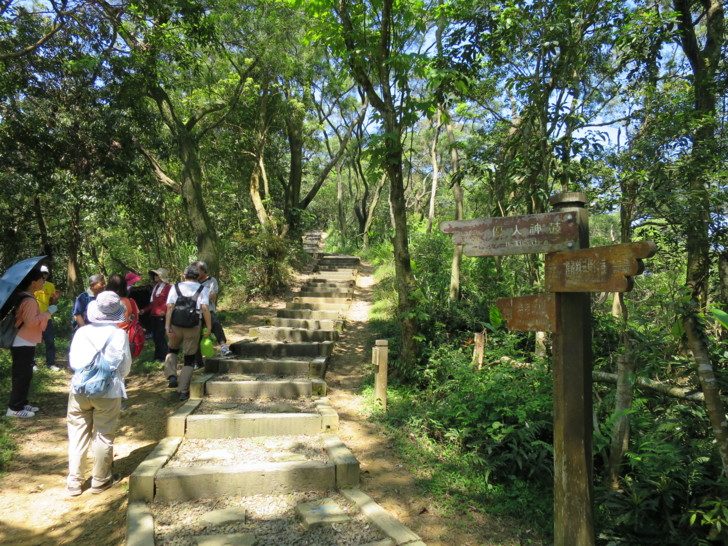 階梯直上5分鐘左右可到「待老坑山」三角點,那裡也有陡下階梯路可到優人神鼓