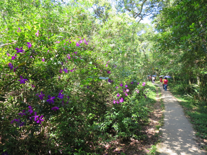 登高步道兩旁櫻花樹夾道,可惜今日非櫻花季節。