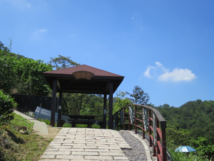 步道中途的聆風亭,配合藍天白雲,顯得更富詩意
