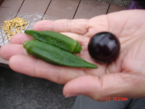 淑清的秋葵、淑娟的樹葡萄。好吃!