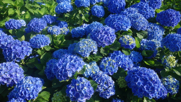據維基百科說:此花可由調節土壤的酸鹼度來改變花色,土壤酸性花成藍色,鹼性則呈紅色。