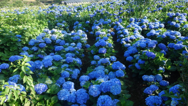 它是在大屯山.七星山等群山環繞的山谷處,帶點霧氣濕氣,俗話說:草山風.竹子湖雨。竹子湖常遭水患衝擊。而繡球花怕旱又怕澇,據聞只要水稍多了或少了,繡球花根葉就會爛掉或花.葉周邊會枯黃,還好這裡是梯田排水良好,且位在山腳下,陽光不多,適合生長。每年四.五月天氣不熱又是梅雨季較濕潤,是它盛開的花季。很敬佩農民深懂因地制宜,且能運用土壤的酸鹼度讓花如魔術般能紅.能藍.能紫,給年節喜慶.公園.庭園.風景區增添許多艷麗的色彩。