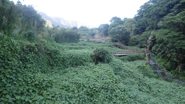 四.參觀路線:小8到竹子湖站約需50分鐘---下車就見到大梯田路標---沿著下坡與溪邊就可眺望不遠處的梯田---棧道---青楓步道。只可惜年久失修,棧道不通,青楓步道作罷,改走海芋步道。