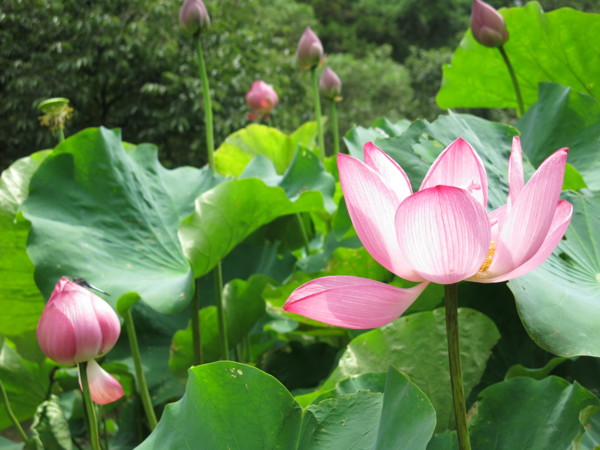 四、餘韻:健行結束去六窟途中,驚喜發現芙蓉出水、荷葉田田,美呆了。這怎禁得起如美和我心癢癢的?餐食間,如美以炸魚片巴結團長,喜獲行程加碼,回程終得車暫停,一圓賞花夢!
